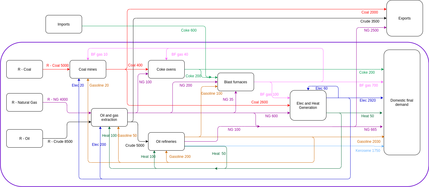 Alternatively, we can modify the Energy Conversion Chain to describe energy flows across countries using a Multi-Regional Physical Supply Use Table framework (see Aramendia et al. (2022)). For the sake of simplicity, we use here the Global Market Assumption to demonstrate calculations with the multi-regional framework.